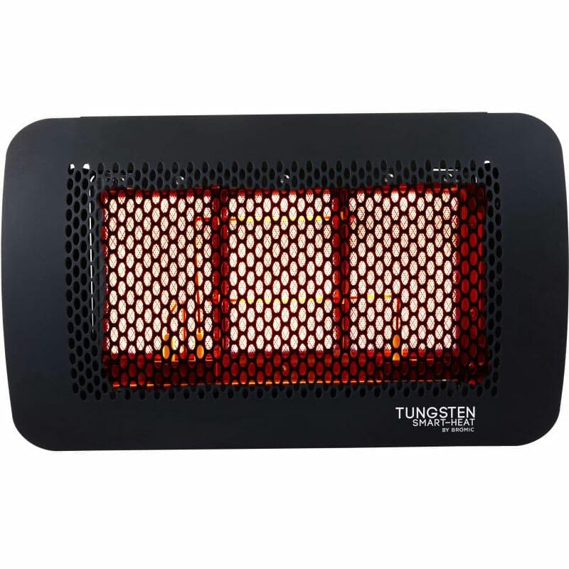 Tungsten Smart-Heat – 300 Series Patio Heater, Item # BH0210001. The Tungsten Smart Heat 300 series patio heater delivers a slick style for outdoor patio heat. Delivering an impressive 26,000 BTU’s, this heater uses 3 burners that emit a red glow for an impressive look. For larger patio areas, the Tungsten Smart Heat series is also available in a 500 series.